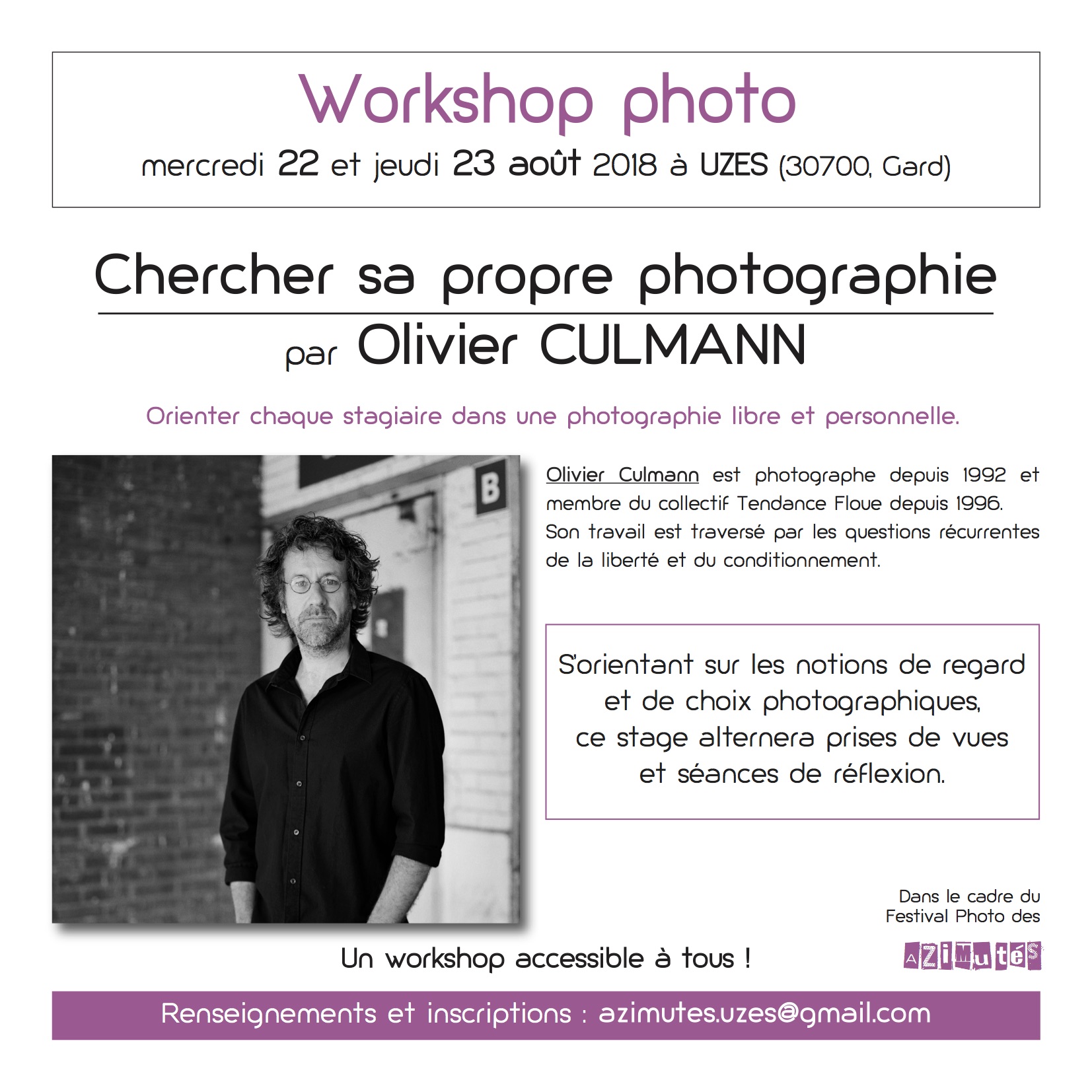 – Matériel à apporter : appareil photo, ordinateur, portfolio (venir avec une ou 2 série cohérente)
